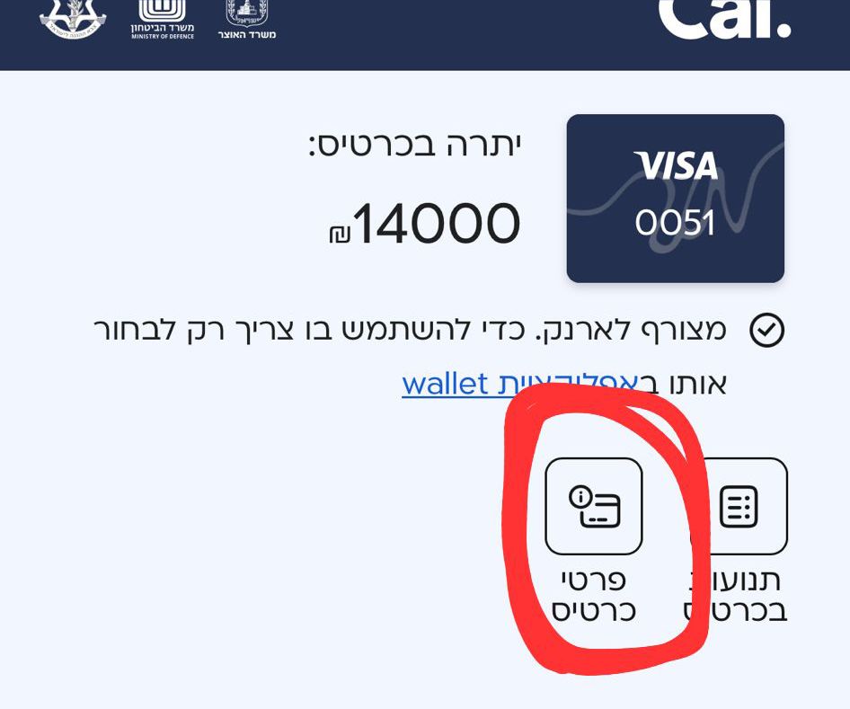 * אם הצמדת את הכרטיס לארנק הדיגיטלי, ואין ברשותך את מספר הכרטיס,תאריך ו CVV - ניתן לשחזר את פרטי הכרטיס כך: